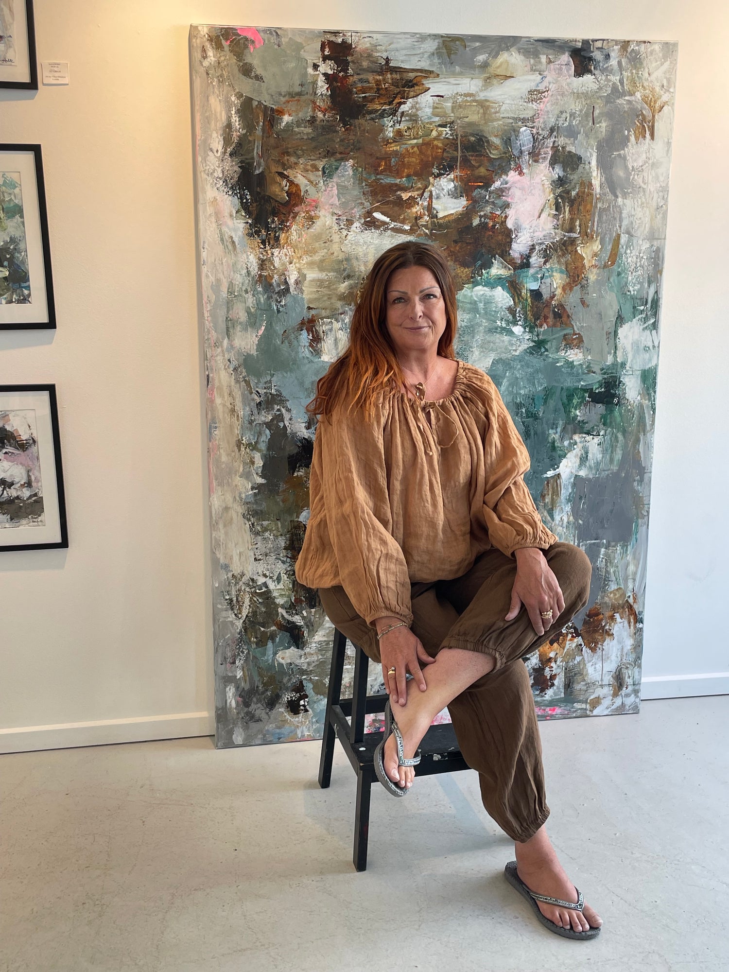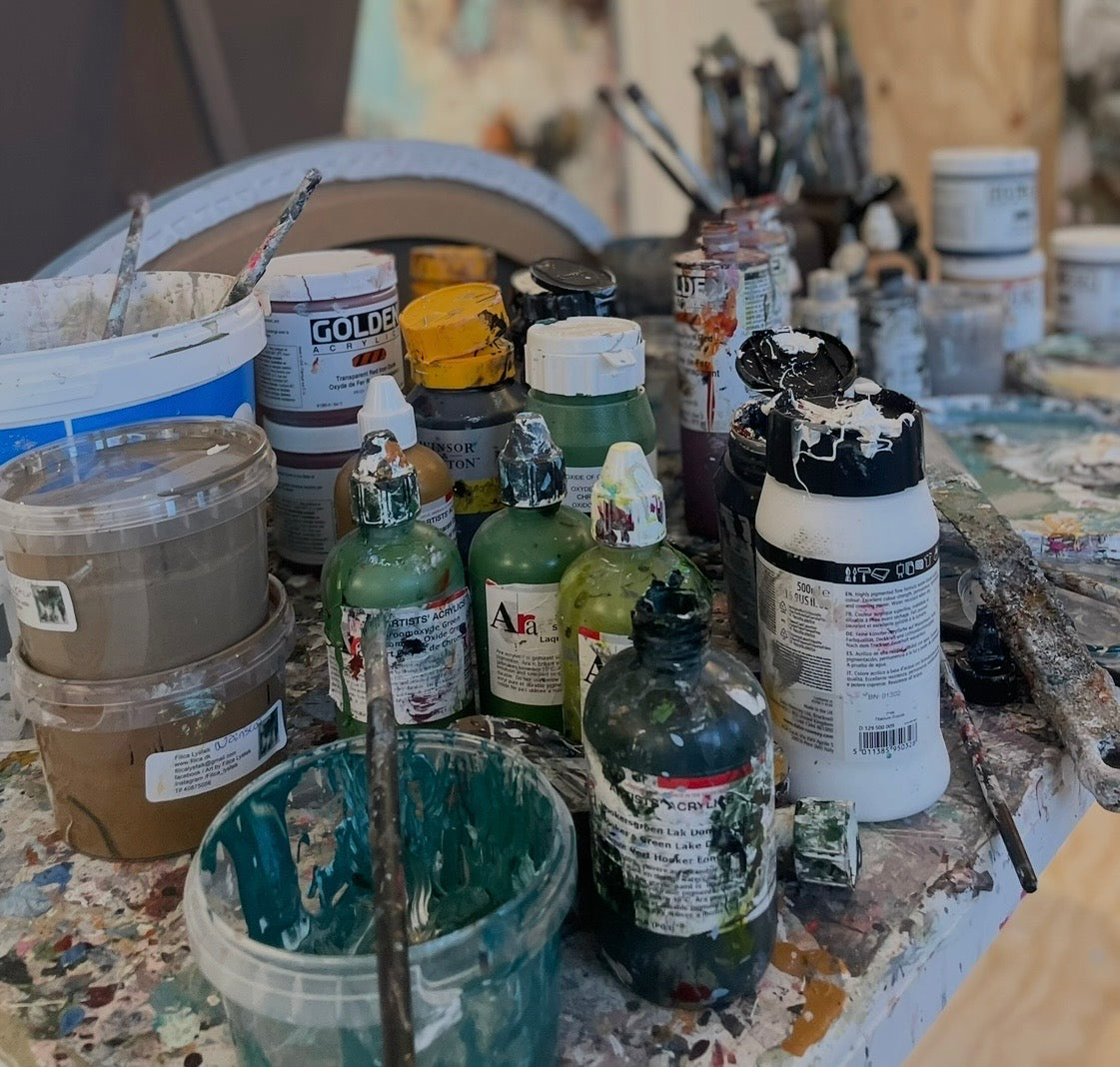 Mit formsprog er ekspressivt, med en farveholdning der er inspireret af moder jords natur. I maleprocessen er jeg meditativ og nærværende, og jeg arbejder i mange lag i mine malerier. Hvert eneste penselstrøg der er med til at skabe ro og kaos, energi og balance, er med til at skabe det færdige maleri.
